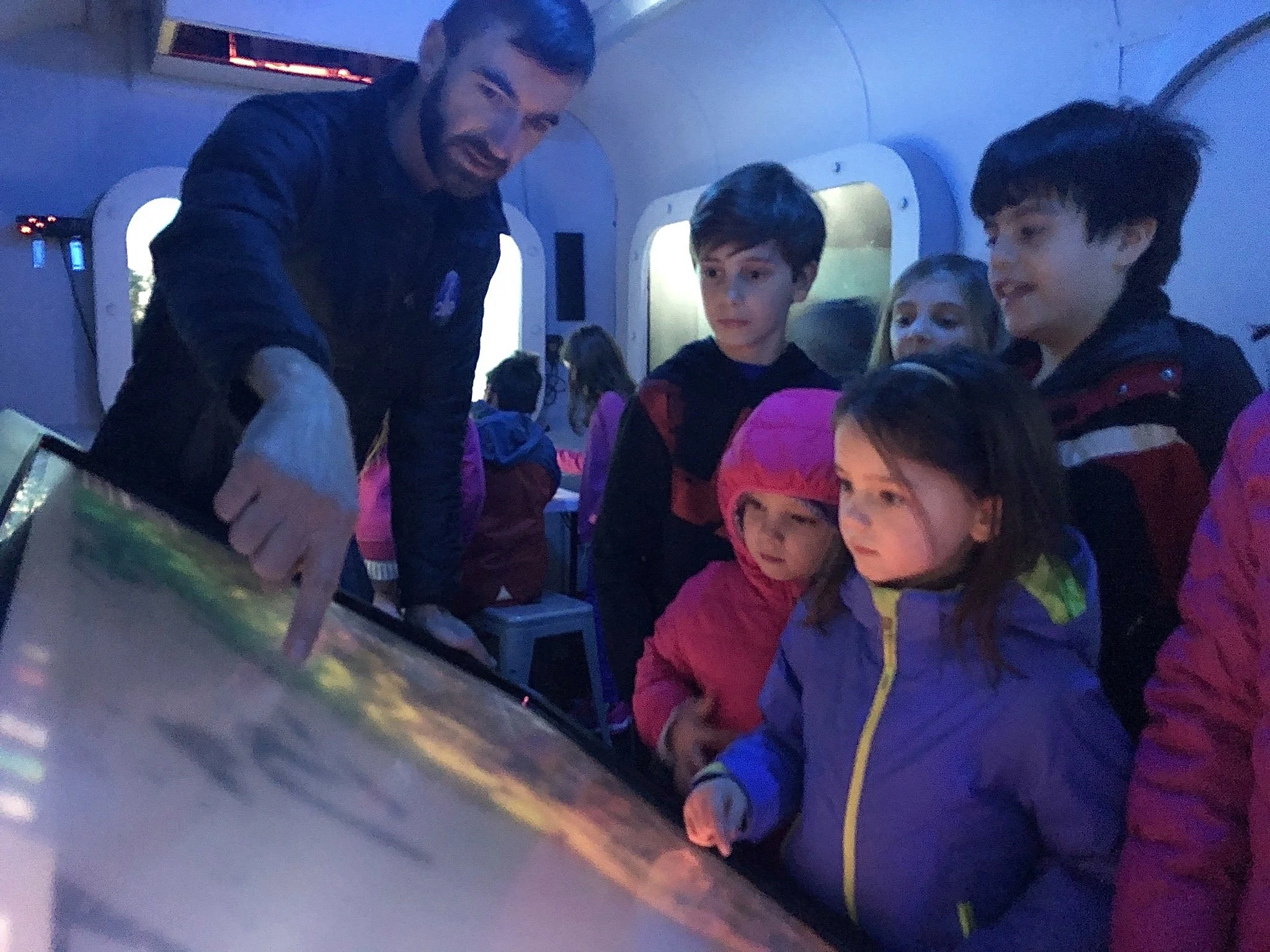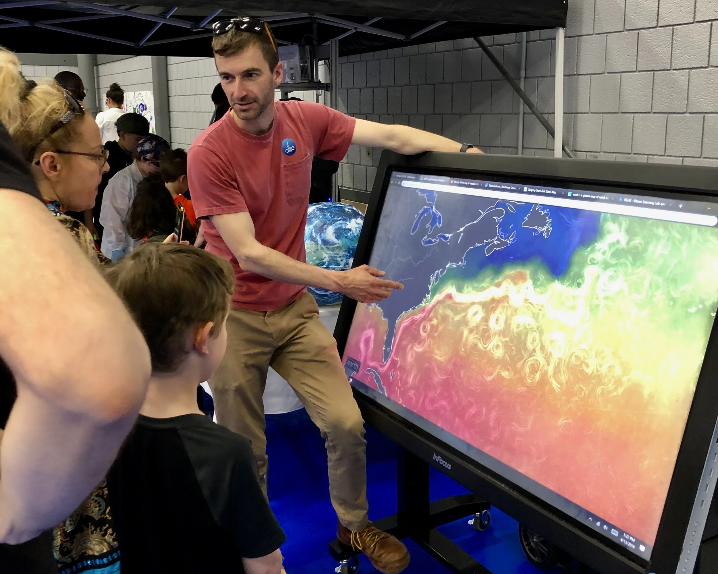 Large interactive displays for showcasing maps and ocean and climate data. Designed to accompany the Virtual Submarine or be transported and set up independently.